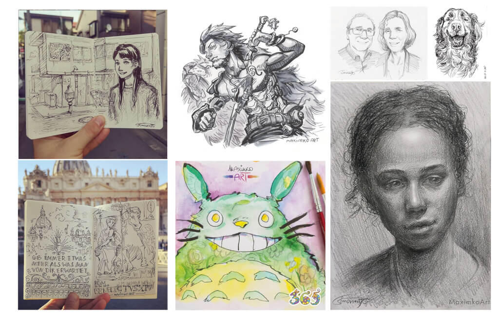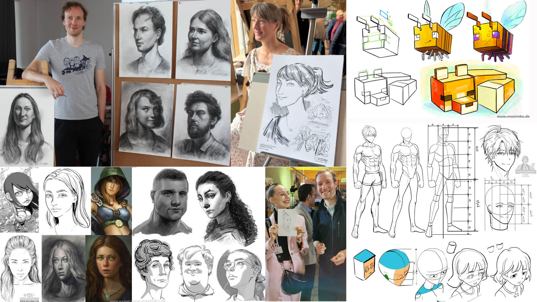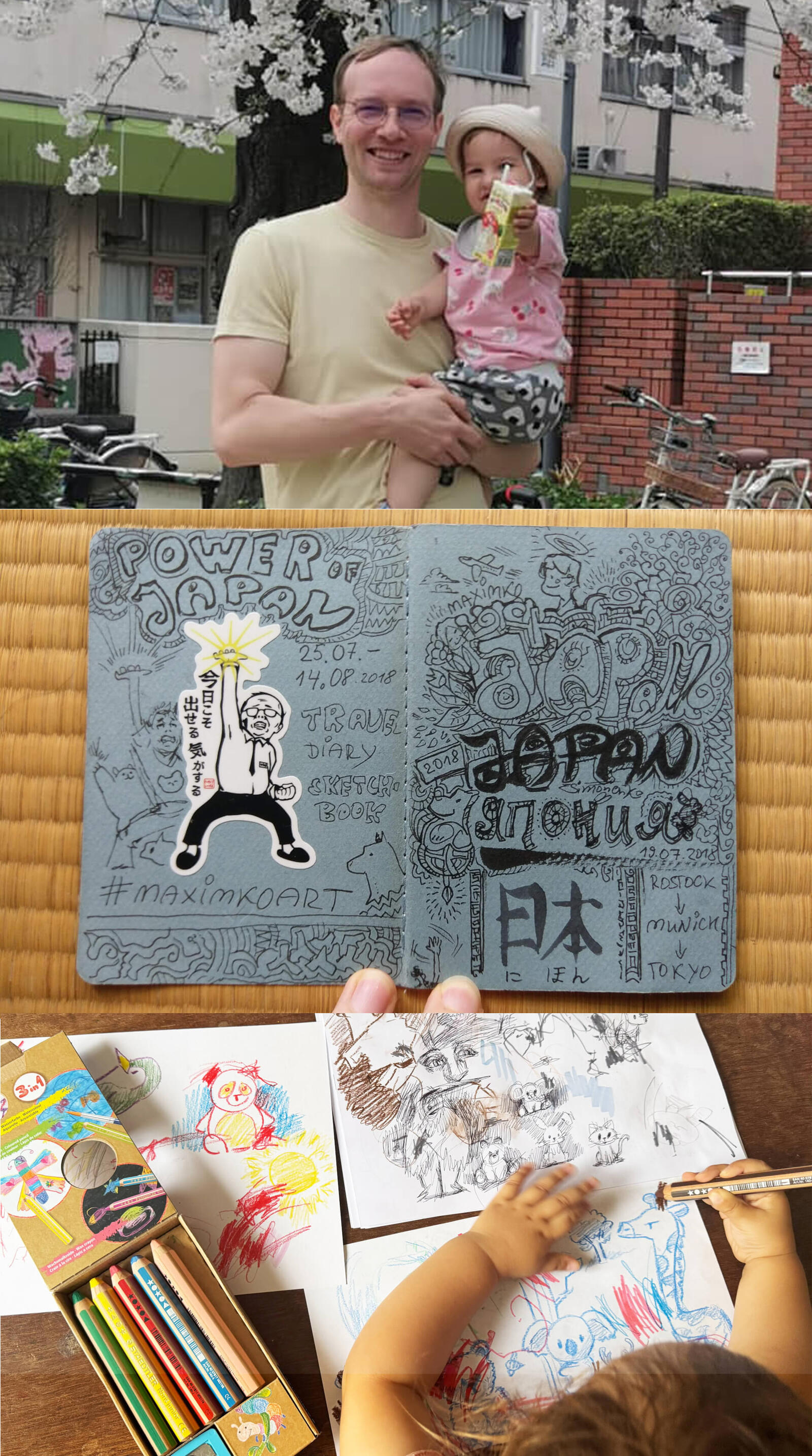 日本への移住 妻も私も日本が大好きです!娘が小学校に上がる前に、思い切って移住することを決意しました。育児と日本への移住準備で時間はいくらあっても足りませんが、プロのフリーランスとして長年培ってきた「柔軟性」と「生存戦略」には自信があります(笑)。アーティストとして日本でどう活動していくか、今はその可能性を模索している最高にエキサイティングな段階です!日本でのスケッチ旅行(アートツアー) 日本の人々、建物、自然、そして食!すべてがインスピレーションの源です。これまでの旅で、すでに10冊以上のスケッチブックが思い出と絵で埋まりました。この感動を他の人とも共有したいと考え、日本での「スケッチ旅行」を企画しています。これは私自身が心からやりたい仕事の一つで、すでにウェイティングリストに登録してくれている方もいます。きっと素晴らしい体験になるはずです!日本でのライブ描画 ドイツで成功したライブ描画を、日本でも展開したいと考えています。もちろん日本は勝手が違いますが、まずは自分のスタイルで挑戦し、学びながら適応していくつもりです。 イベントでの似顔絵やグラフィックレコーディングのご依頼については、日本市場向けの専用サイトを開設しました:Maxim Simonenko - Visual Artist Japan 日本での最初の仕事が今から待ちきれません!ドイツ向けオンライン講座の継続 マンガの本場である日本に拠点を移したことで、私の「マンガ絵教室」もさらにパワーアップしました。ライブトレーニングや効果的な動画を通じて、アニメ・マンガ好きの皆さんの上達を全力でサポートしていきます。 (ポートレート講座については、今はマンガと日本での活動に集中するため、一旦お休みしてアップデートを待ちたいと思います。:) )