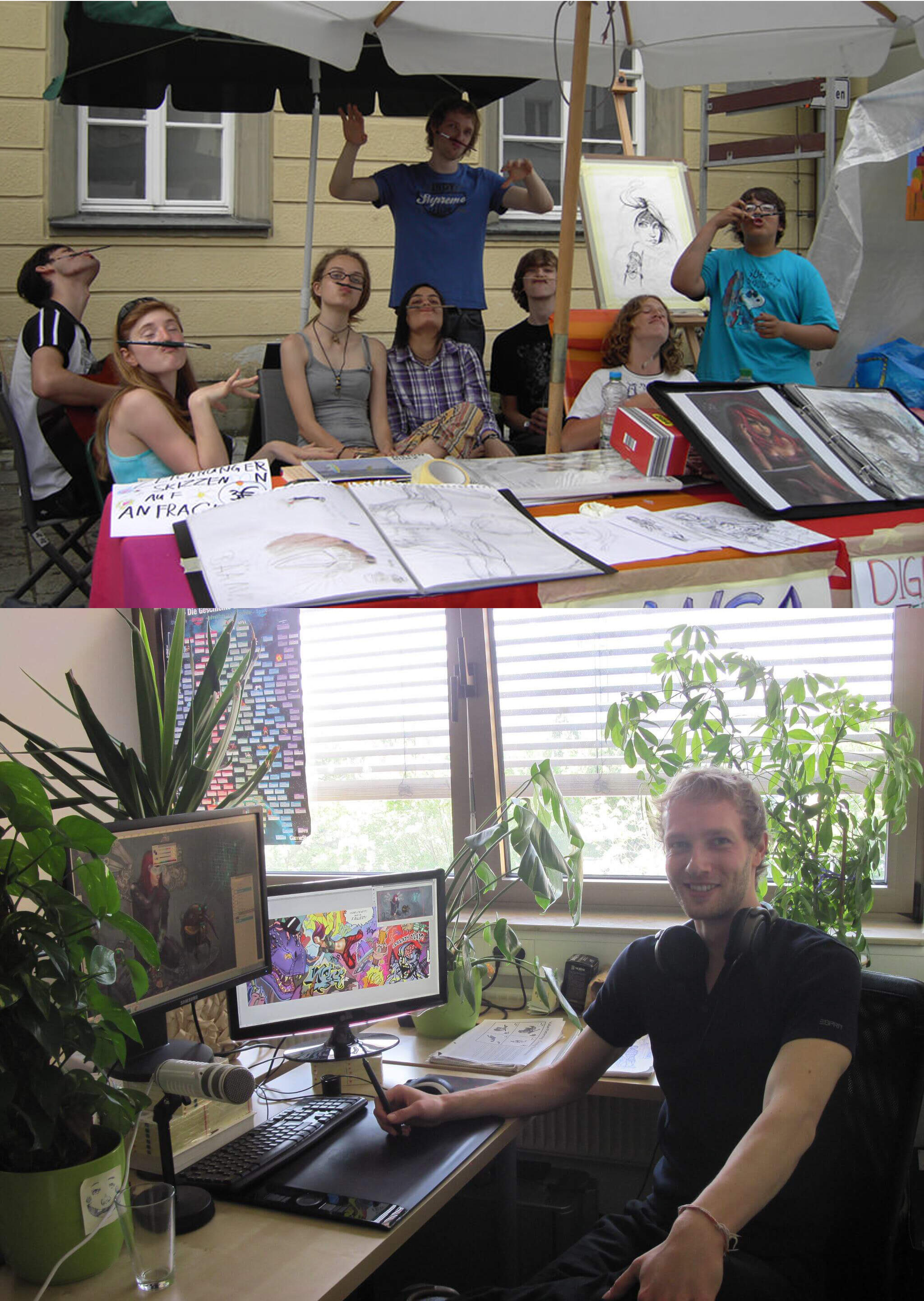 絵の上達スピードが遅いと感じ、思い切ってITエンジニアの仕事を辞めました。ミュンヘンを離れ、ほぼ毎日絵を描く生活をスタート。まずはマンガに専念しましたが、出版社には採用されず、コンテストでも結果は出せませんでした。最初の1年は、それまでの仕事のおかげで十分な失業保険を受け取ることができたため、金銭面では安定した環境で挑戦を続けることができました。