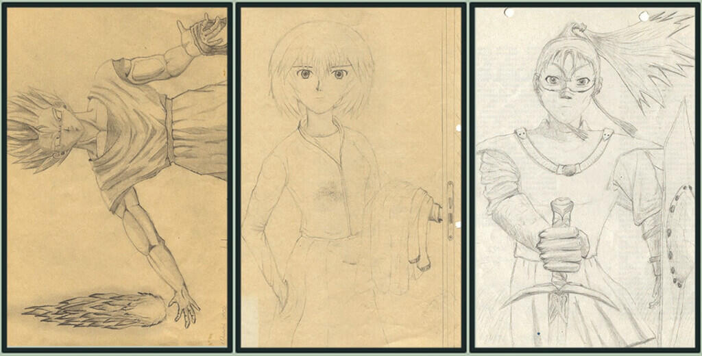 当時は「書くこと」も私にとって大きな情熱の一つでした。自由な時間はすべて、スポーツ、絵、そして執筆活動に注いでいました。少しずつインク(墨)を使った描き方にも慣れてきた頃です。カンフーを習っていたこともあり、格闘シーンを描くのが何よりの楽しみでした。